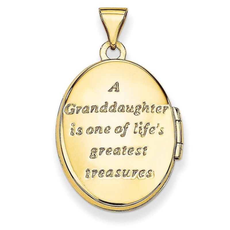 Poliruotas 14 karatų geltonasis auksas. Sudėtyje yra 2 nuotraukos. Tekstas kitoje pusėje. Ovalus med €500.0 |