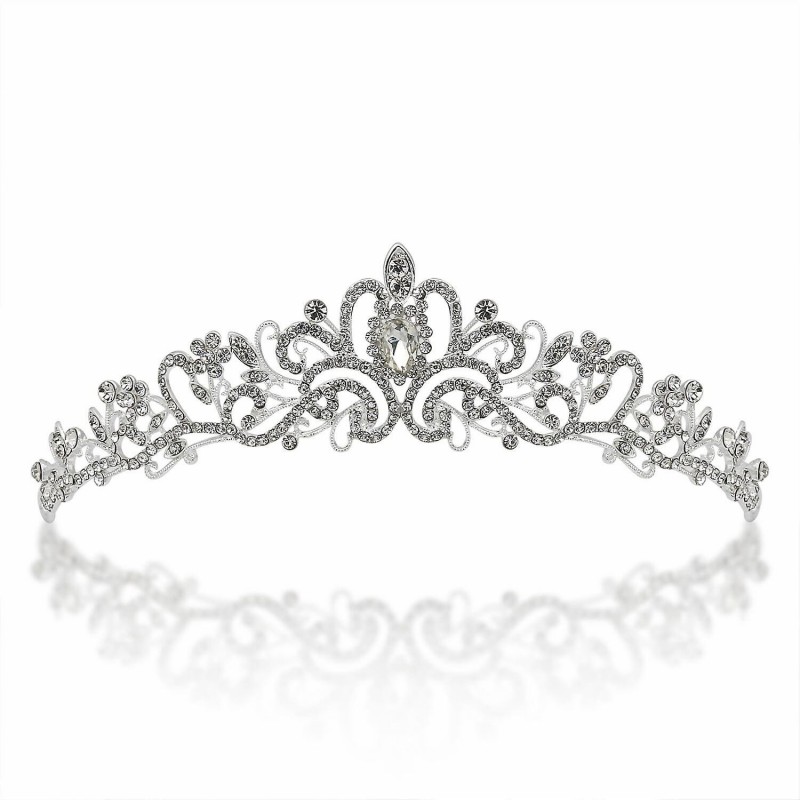 Vestuvinės karūnos tiara, sidabrinė, metalinė su kristalais, 16x22x4,5 cm