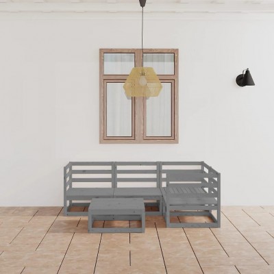 Spalva: pilka. Medžiaga: pušies masyvas. Centrinės/kampinės sofos matmenys (vnt.): 70 x 70 x 67 cm (P x G x A). Stalo matmenys: 70 x 70 x 30 cm (P x G x A). Reikalingas surinkimas: taip. Maksimali apkrova (vienai vietai): 110 kg. Pristatymą sudaro: 3 kampinės sofos dalys, 1 centrinė sofos dalis, 1 stalas.