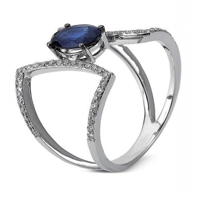 „Luna Creation“ žiedas - 14 karatų baltasis auksas su deimantais ir 0,23 karato safyru - 1B684W4535