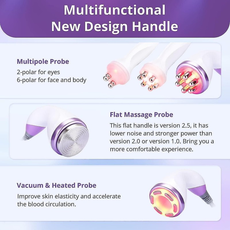 2.5 versija, galingesnė: Mūsų 8 viename grožio aparatas turi 2.5 versijos plokščią rankeną, kuri yra tylesnė ir galingesnė nei kitos plokščios rankenos. Rankena yra ergonomiškai suprojektuota ir patogi laikyti. Unikali išvaizda, jutiklinis ekranas: Nesvarbu, ar naudojate jį kaip grožio aparatą, šis nuostabus grožio aparatas pritrauks visų dėmesį. Jutiklinis ekranas leidžia lengvai valdyti jį sėdint, nuo funkcijų perjungimo iki galios lygių reguliavimo piršto palietimu. Daugiafunkcis: Jei įsigysite šį grožio aparatą ir naudosite jį namuose, galėsite pasiekti tuos pačius rezultatus negaišdami laiko salone, o tai taip pat sutaupo daug pinigų. Jis taip pat naudojamas grožio salonuose. Tai puikus pasirinkimas kaip dovana šeimos nariams ir draugams.