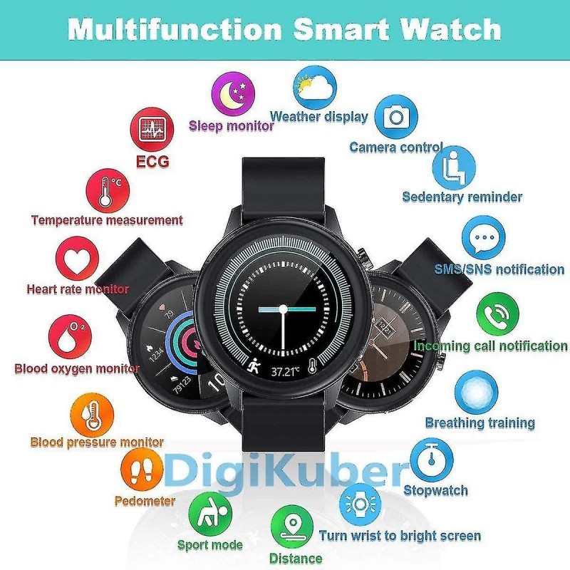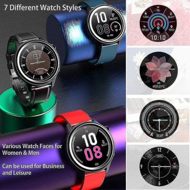 DAUGIAFUNKCIJOS, tokios kaip laiko ir datos rodymas, orų rodymas, skambučių ir žinučių pranešimai, žingsnių skaitiklis, kalorijų suvartojimo įrašymas, sportinio atstumo įrašymas, 7 sporto režimai, širdies ritmo monitorius, EKG/PPG/AI diagnostika, kameros valdymas, miego stebėjimas, mankštos priminimas, chronometras, kvėpavimo treniruotės. 24 VALANDŲ KŪNO TEMPERATŪROS MATUOKLIS Jis gali matuoti jūsų kūno temperatūrą 24 valandas, kūno temperatūros duomenis galima išsaugoti [SmartHealth] programėlėje, galite bet kada stebėti savo kūno temperatūrą ir sveikatą. SPORTO IR SVEIKATOS VALDYMAS Stebėkite kelis sporto šakų ir sveikatos duomenų matavimus: kelių sporto šakų režimas, žingsniamatis, atstumas, kalorijos; EKG/PPG/AI diagnostika/širdies ritmo monitorius. Nuolat stebėkite savo sveikatą. Išmaniojo laikrodžio sporto ir sveikatos duomenys yra tik informacinio pobūdžio, prašome klausytis gydytojo patarimų. MIEGO STEBĖJIMAS IR ORŲ RODOMAS Miego stebėjimo funkcija: Kai užmiegate, išmanusis laikrodis automatiškai apskaičiuos jūsų miego kokybę ir sinchronizuos duomenis su programėle. Galite žinoti savo miego kokybę. Orų rodymo funkcija rodo dabartinę orų informaciją ir oro kokybę. (Pastaba: norint peržiūrėti orus, reikia gauti telefono buvimo vietos informaciją.) IP68 ATSPARUS VANDENIUI IR MAGNETINIS ĮKROVIMAS Įrenginys, turintis IP68 reitingą, pasižymi puikiomis atsparumo vandeniui savybėmis ir atitinka daugumą kasdienių poreikių. (Pastaba: ilgam nemerkite jo į gilų vandenį. Taip pat nenaudokite jo karštosiose versmėse ar voniose.) Magnetinis siurbimo įkrovimas, įkrovimo laikas yra apie 3–4 valandas, naudojimo laikas – apie 5–13 dienų, budėjimo laikas – 20–40 dienų.